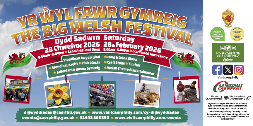 Dathlu popeth yn ymwneud â Chymru wrth i’r Ŵyl Fawr Gymreig ddod i ganol tref Coed Duon ddydd Sadwrn 28 Chwefror!